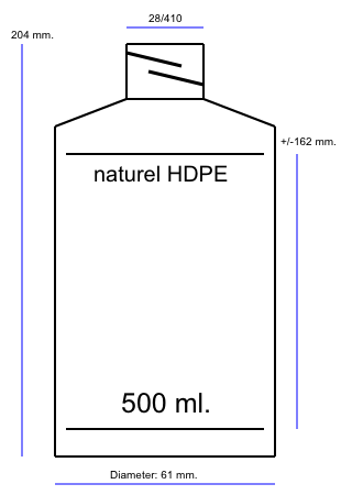 500 ml.bottles from the industry sealable series made out of HDPE with a 28/410 neckfinisch. These bottles are usable for food products.
